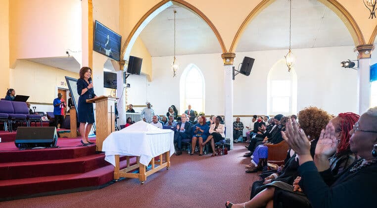 Bishop Darius Pridgen, who leads True Bethel Baptist Church and introduced Hochul at the service, strongly defended the governor against criticism. Pridgen, a former Buffalo Common Council president, argued that critics misunderstood the context of her remarks.